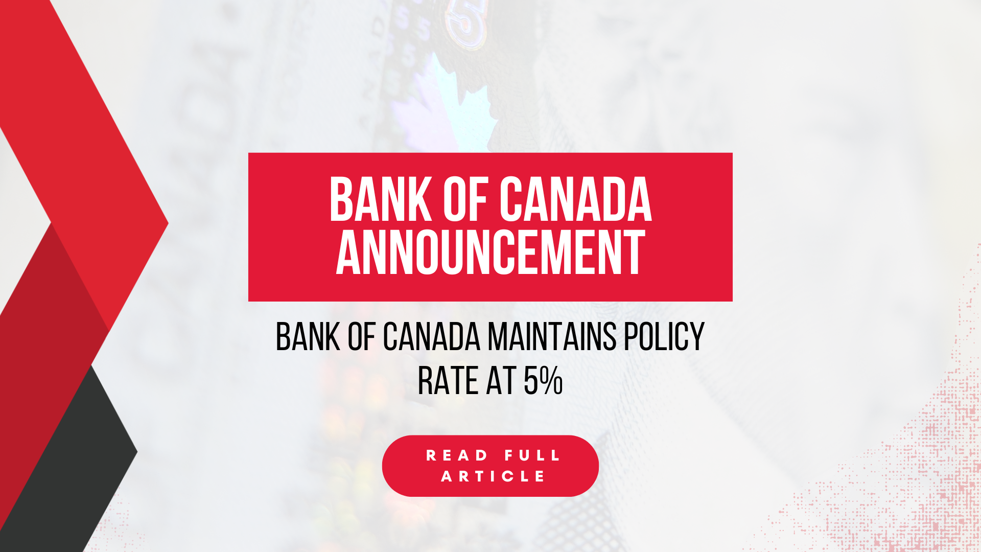 Bank of Canada maintains policy rate at 5%.