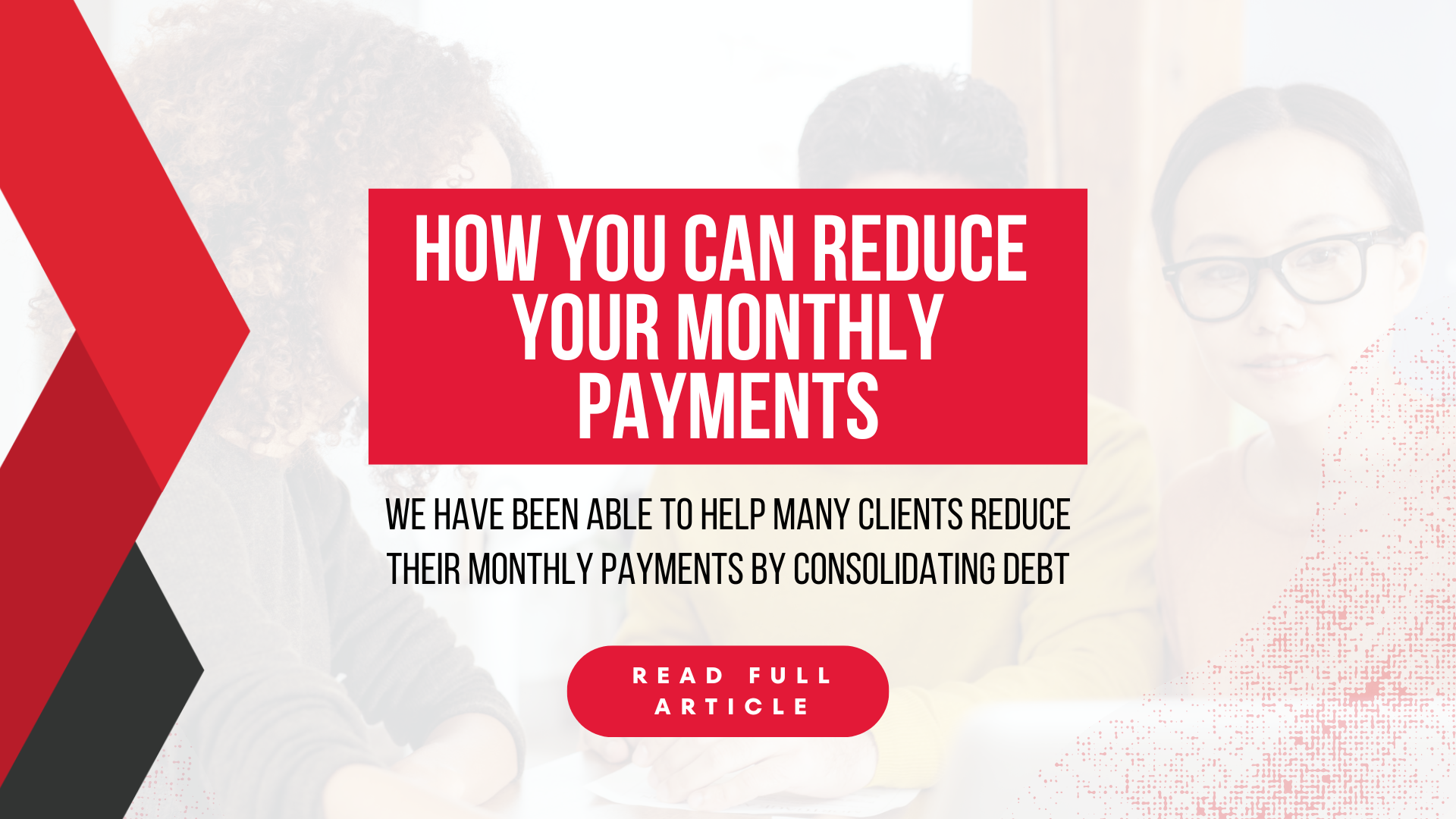 We have been able to help many clients reduce their monthly payments by consolidating debt.
